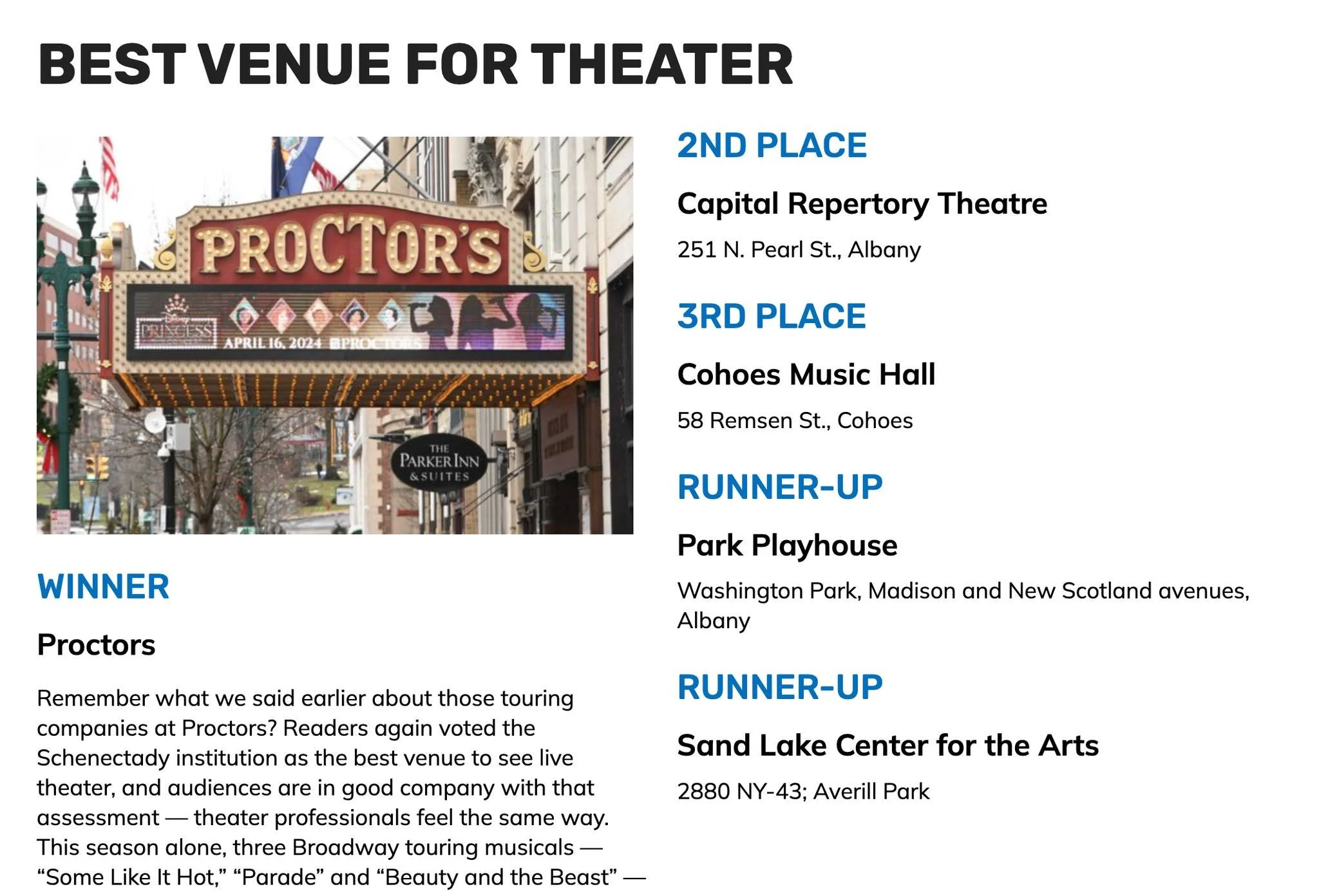 Best Venue for Theatre (Times Union Best of 2026)
